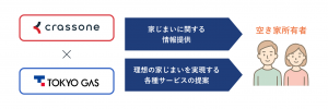 今回の業務提携により、各社の持つノウハウやサービスを活かして、空き家問題の解決に向けた取り組みを開始いたします。具体的には、東京ガスが運営するセカンドライフ応援メディア「みらいほ」において、クラッソーネのサービス紹介を新たに開始いたします。これにより、シニア世代を中心とした生活者が「みらいほ」を通じて空き家・解体に関する情報にアクセスできるようになり、所有者が適切に管理・解体・利活用の選択肢を検討する一助となることを目指します。